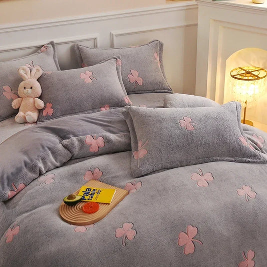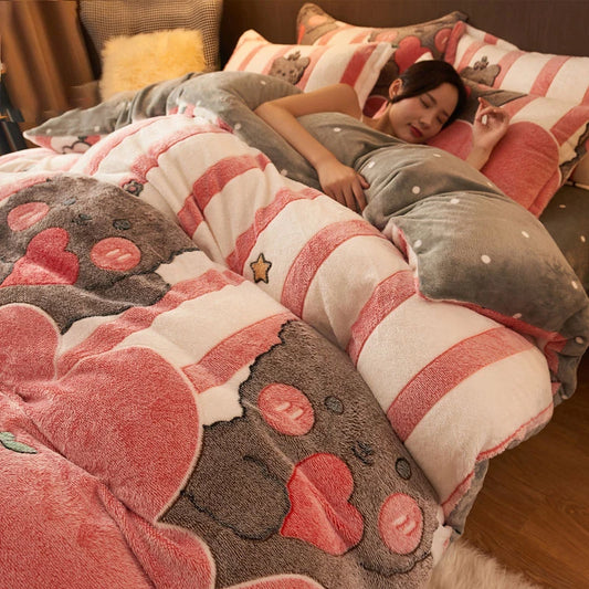 Winter Flannel Duvet Cover 1pcs Cute Soft Warm Coral Fleece Keep Warm Bed Quilt Covers Queen King size without Pillowcase